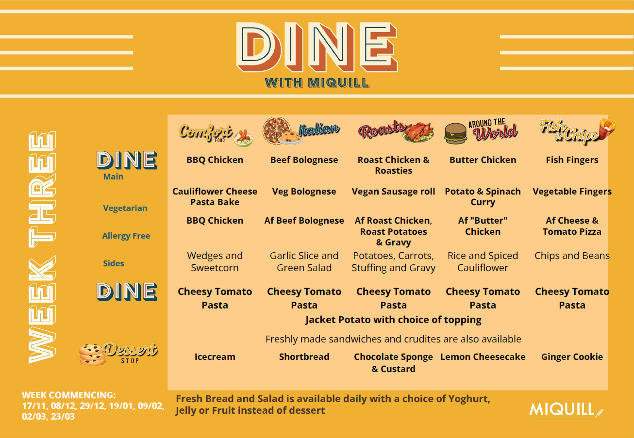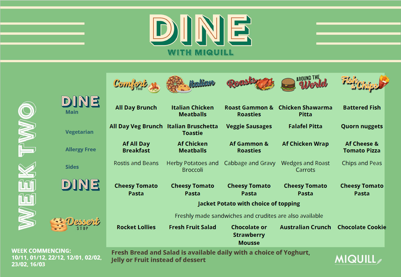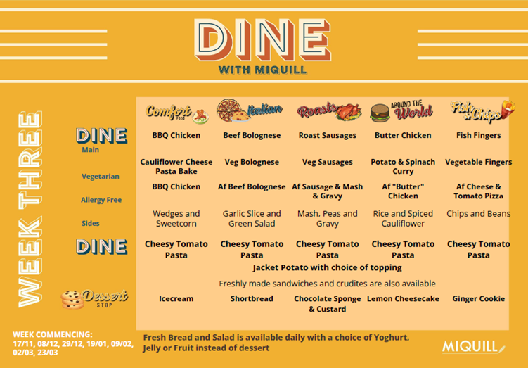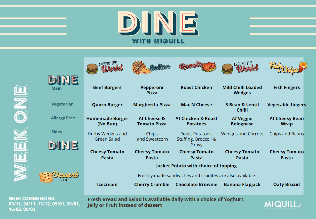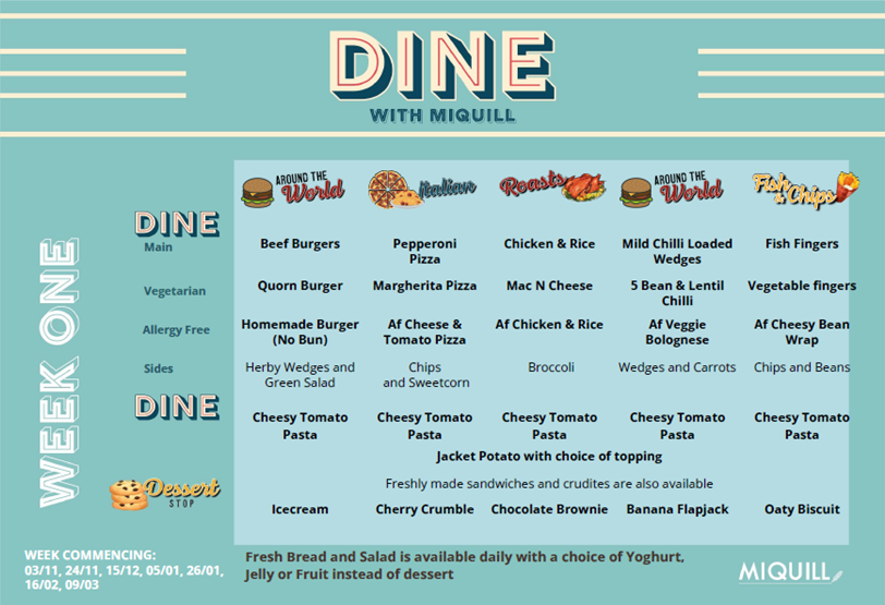 The meals provided at school offer a choice and the menus can be viewed below. A daily order is taken from the children, so that they are able to select food that they would like to eat.